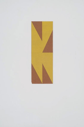 “In ‘Untitled (Blue Configuration)’ four boards are stacked on the floor in front of another stacked group leaning against the wall; in both sets portions of the turquoise-painted sections are obscured by intervening planks of plywood, creating literal and material depth that cannot be achieved in painting. Contributing to the emphatic presence of Sparrow’s work is its presentation directly on the floor of the gallery.”